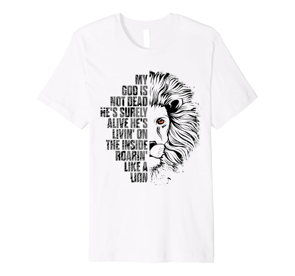 Amazon Com God Is Not Dead He S Alive Roaring Like Lion Christian Faith Premium T Shirt Clothing Shoes Jewelry